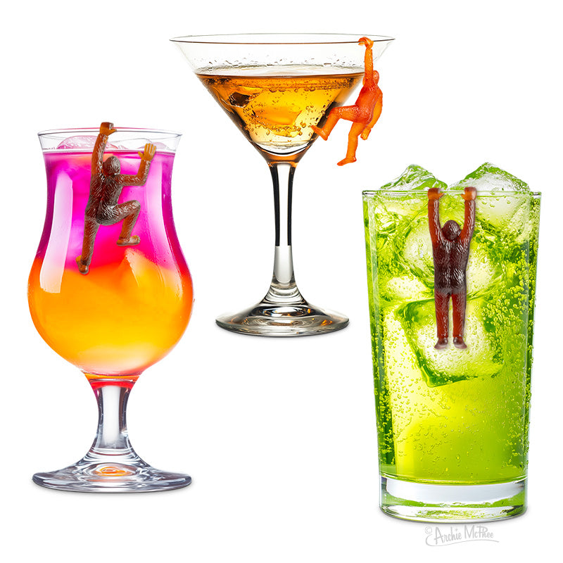 These Bigfoot Drink Markers are perfect for your favorite cryptid-themed cocktail; ours is the Mothman Mule. As a well-known introvert, Bigfoot is not necessarily an expert at parties. These Bigfoot Drink Markers are his attempt to be useful by keeping all the drinks straight. Each styrene Bigfoot is between 2-5/8" to 2-7/8" tall and is designed to hang on the side of your glass. There are three different poses, each in two different colors.